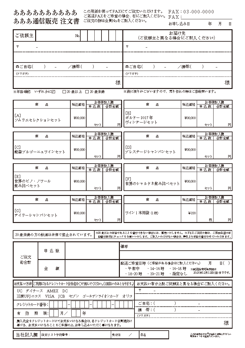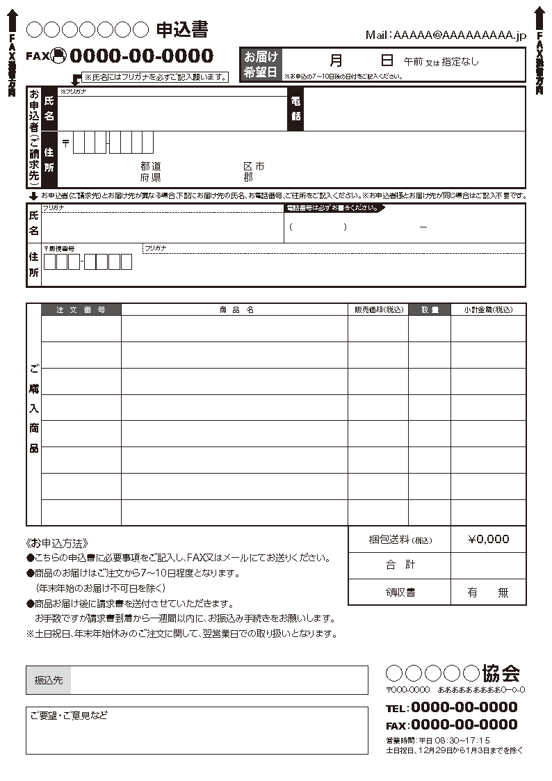 東美では、カタログと連動した申込書やFAX注文書のデザインにも対応しています。